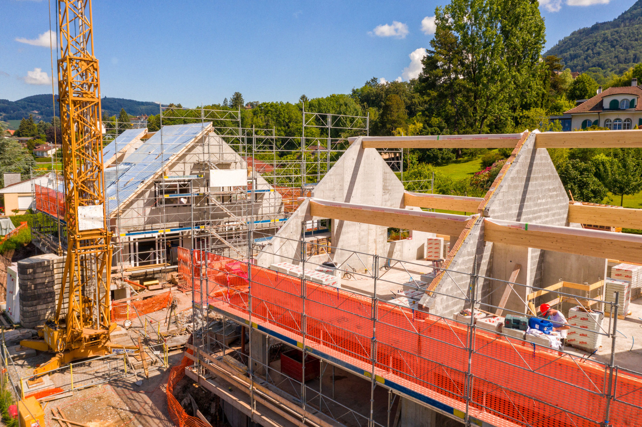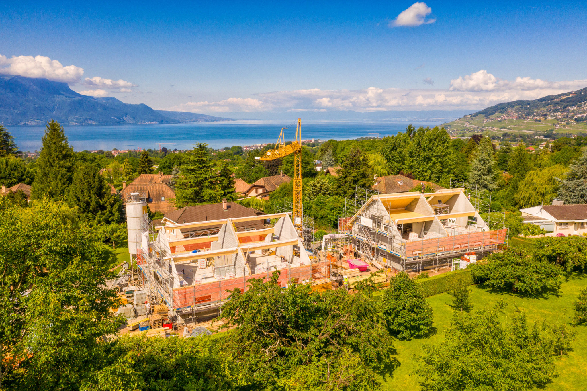 Construction de 5 villas jumelées label Minergie avec garage et places extérieures.