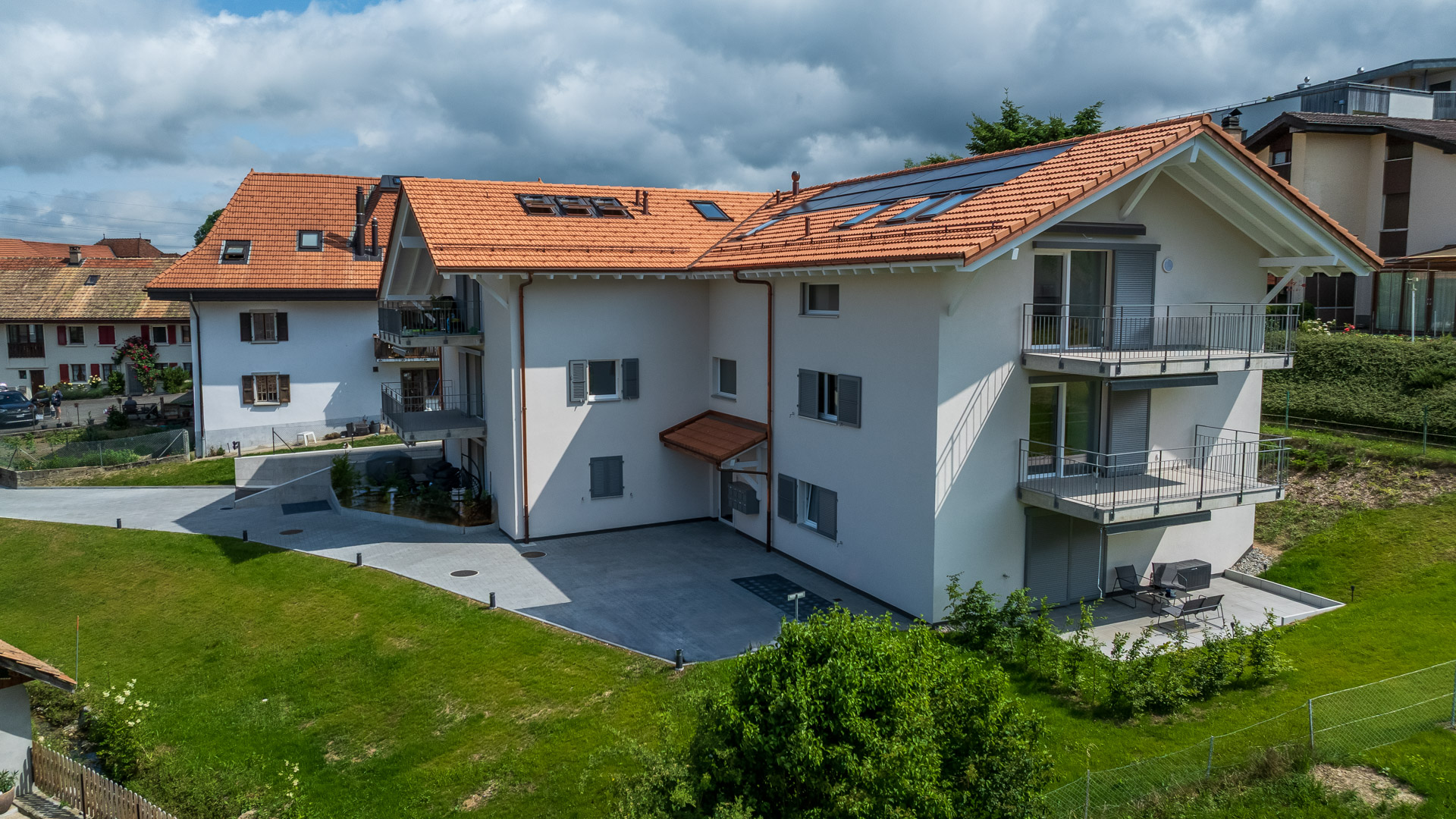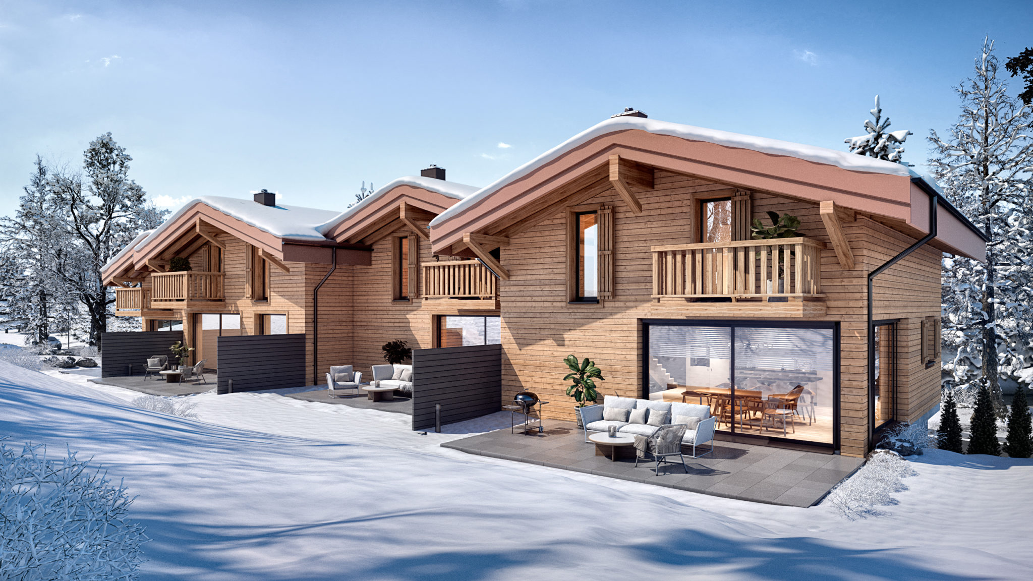 Construction de 7 chalets individuels avec places extérieures couvertes.
